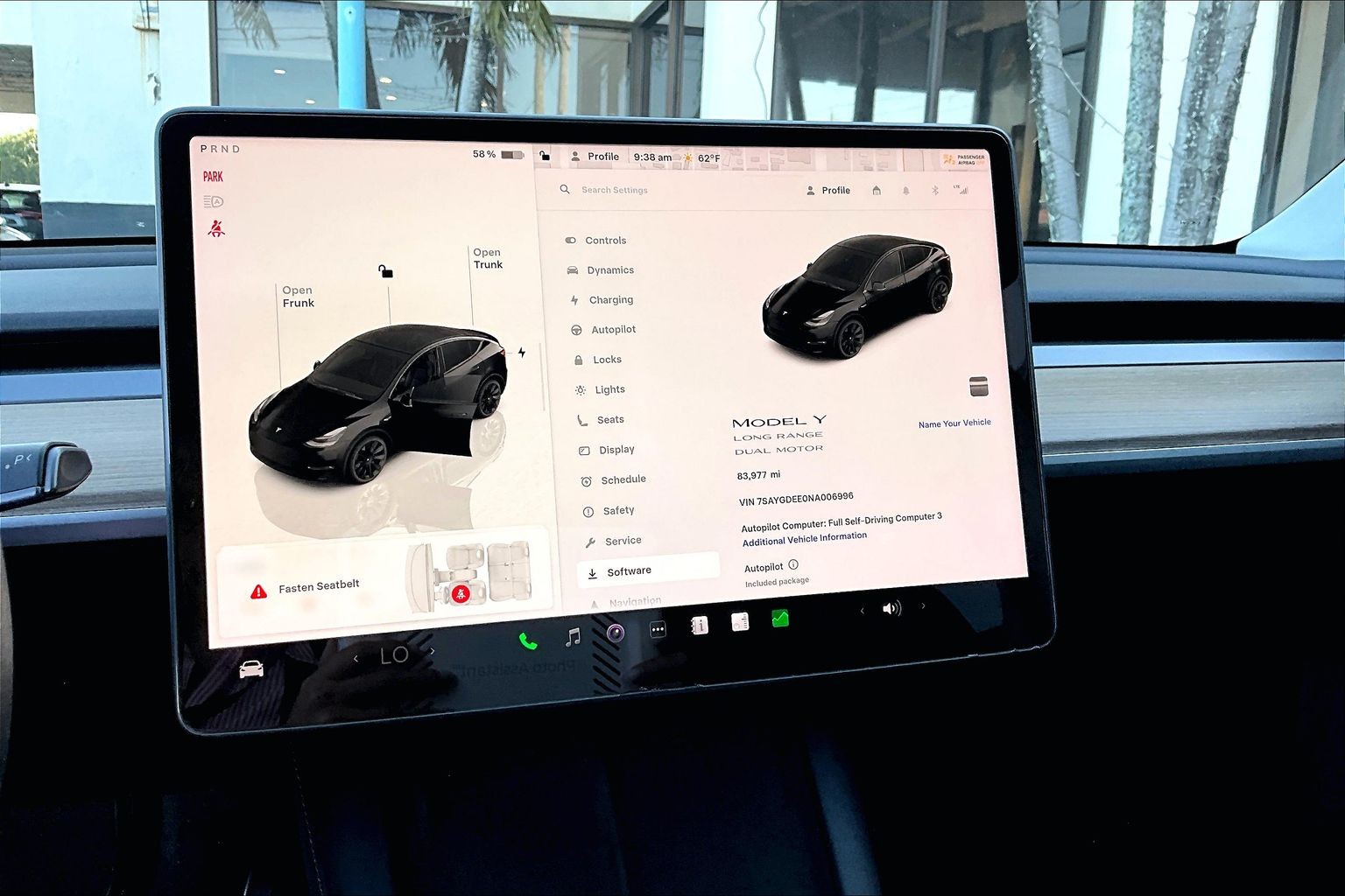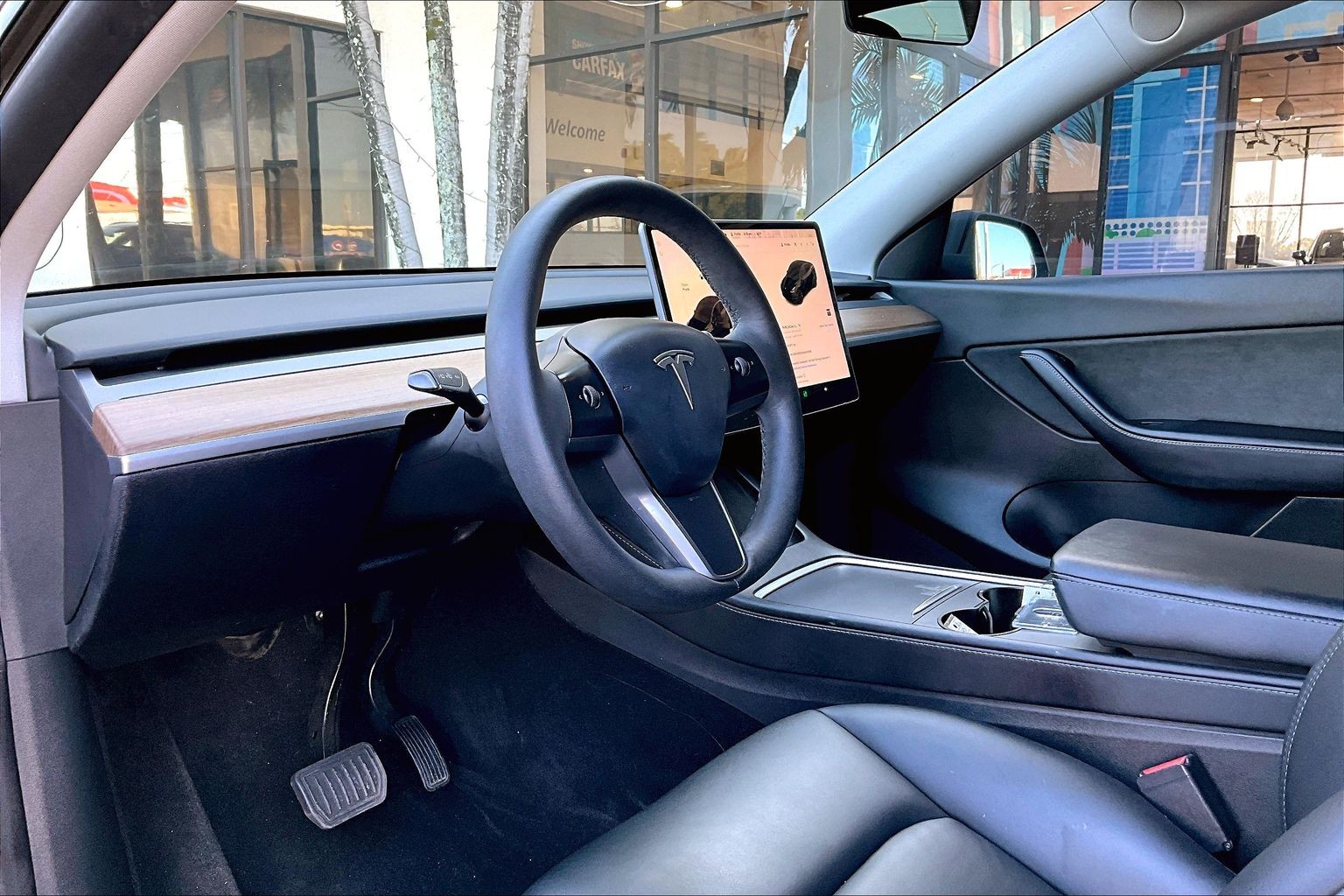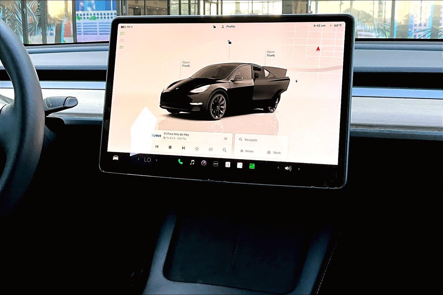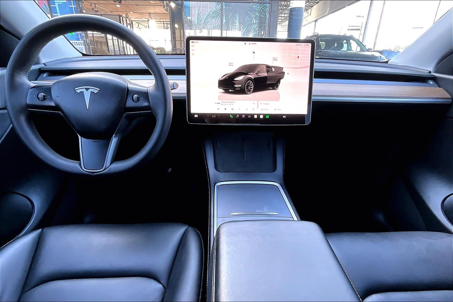 • 📺 Large central touchscreen — controls navigation, media, climate, and vehicle settings, all updated via over-the-air software.